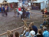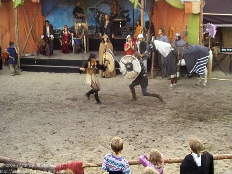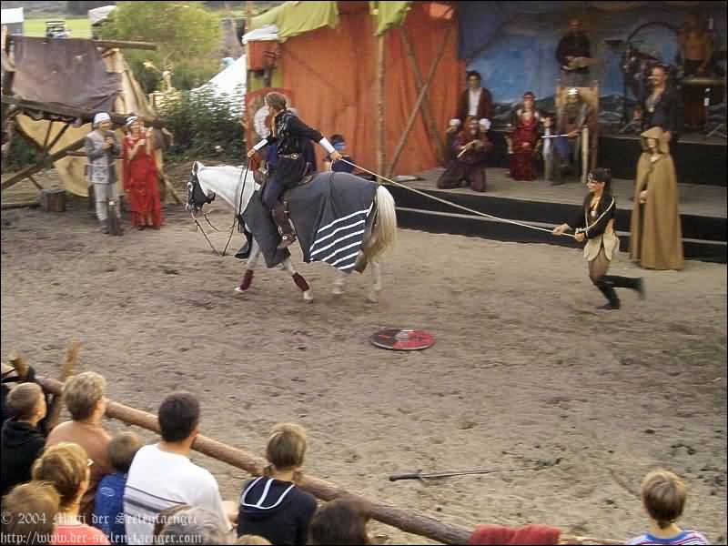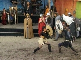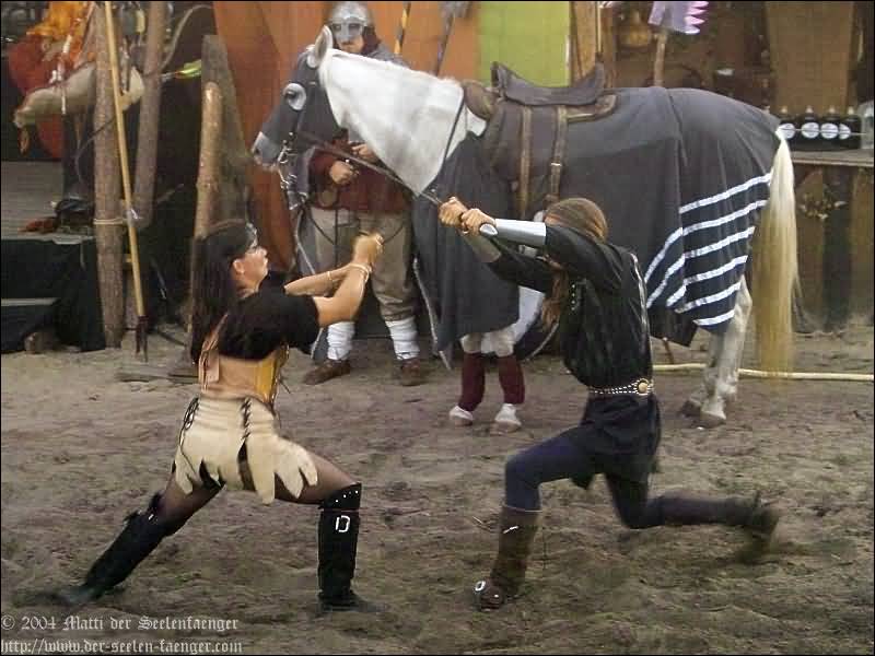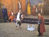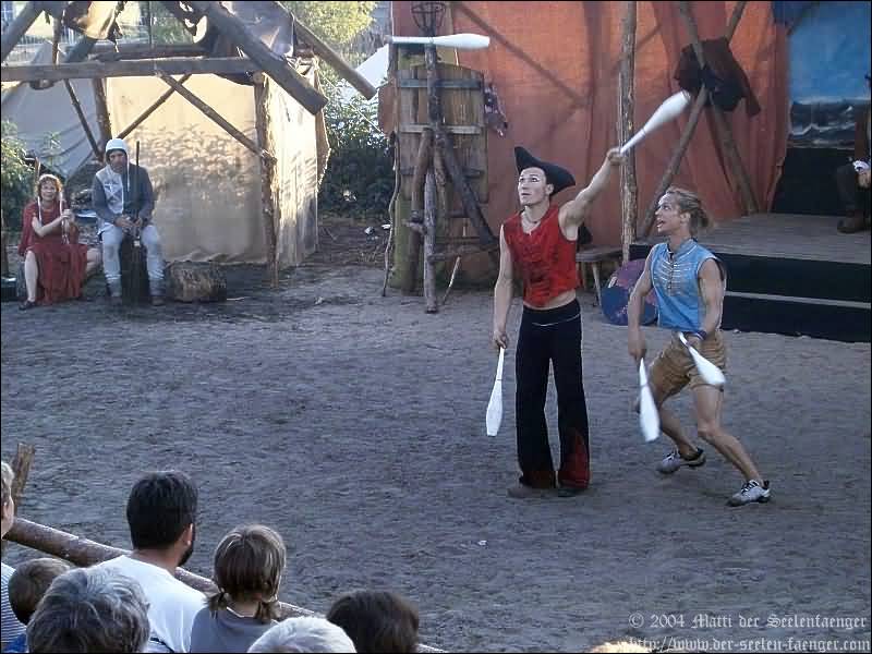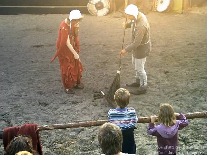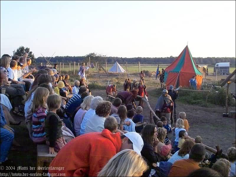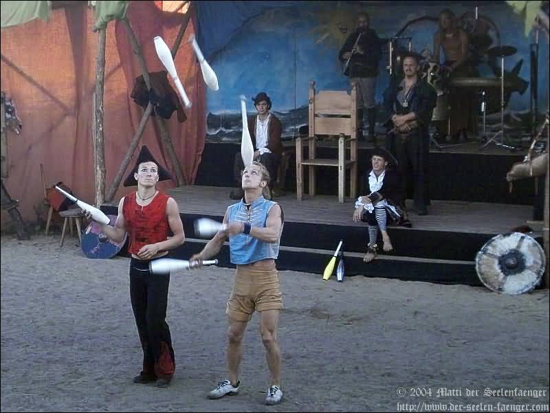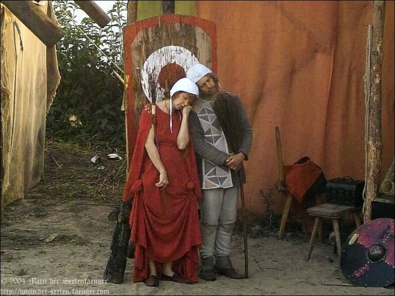 von Dänemark und Hein von Dierhagen Zur Geschichte: Der König wurde angekündigt und das Volk von Dierhagen bereitet ein Fest zu seinem Empfang vor. Quacksalber (Zeter und Mordio) mit einer Wundertinktur, die Blinde Sehend macht, und Gaukler (Die Flugträumer) bevölkern den Markt. Da platzt Margarethe von Dänemark in die Festvorbereitungen und fordert Tribut von den Einwohnern Dierhagens, doch den können sie nicht zahlen. Margarethe stellt ein Ultimatum von drei Tagen, dann wird sie ihre Forderungen eintreiben: Das Vieh wegführen, die Männer schänden und die Häuser anzünden. Hilfe kann nur noch Hein von Dierhagen bringen, ein wackerer Jüngling, der zum Lohn die schönste Jungfrau des Ortes bekommen soll. Dann kommt der König mit seinem Gefolge und die Einwohner Dierhagens klagen ihm ihr Leid. Margarethe tritt auf und der König verlangt ein Gottesurteil über die Rechtmäßigkeit ihrer Forderungen. Es kommt zum Zweikampf zwischen Margarethe von Dänemark und Hein von Dierhagen - und Hein gewinnt! Das Volk ist erlöst! Der König spendiert dem ganzen Volk Bier - wenn sie es denn bezahlen.